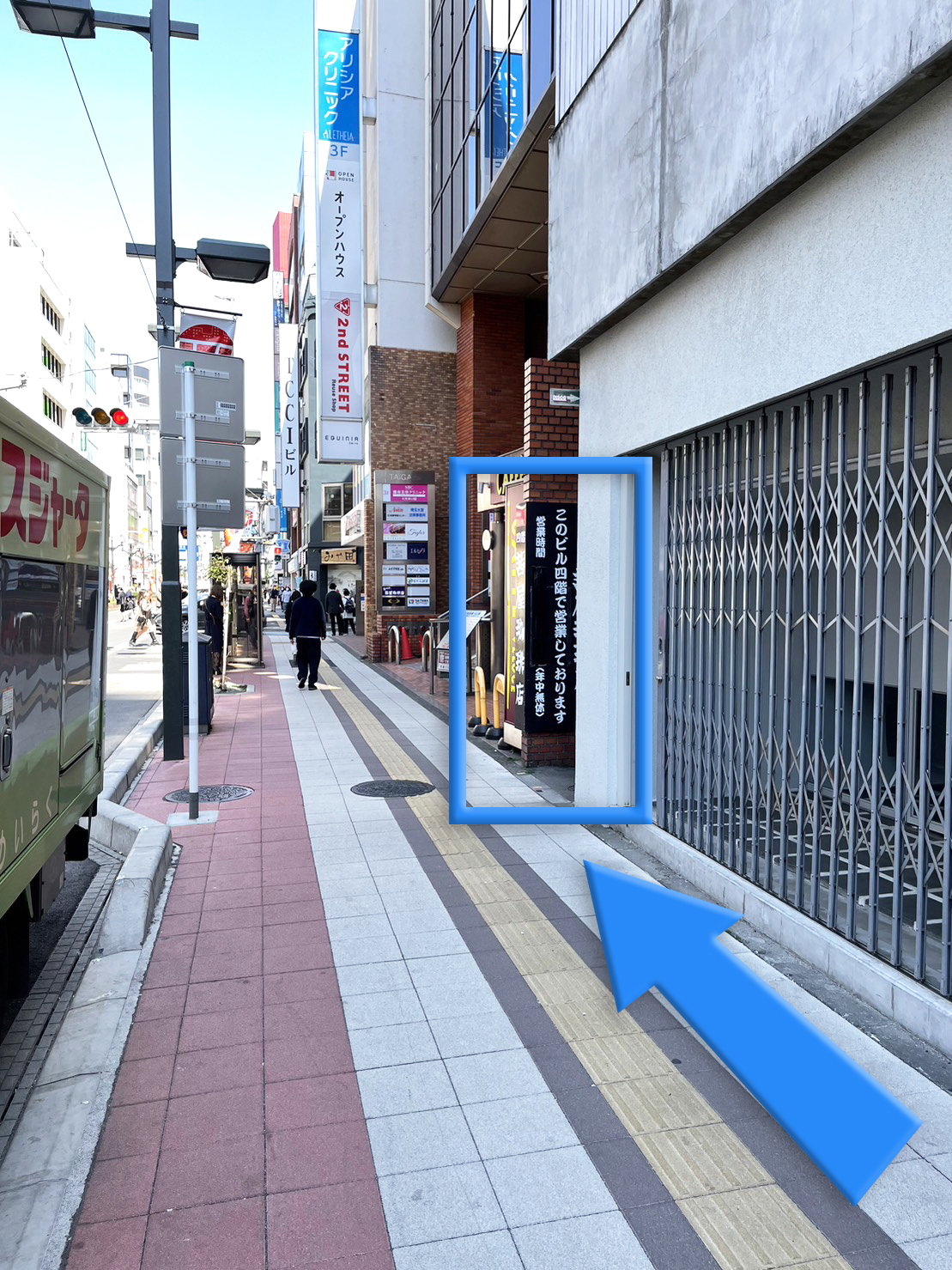 カフェベローチェ様の手前の細道が出てきます。